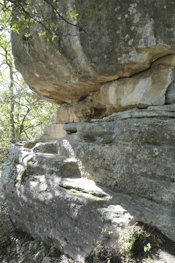 Ce parcours qui sera prochainement proposé par l’association traverse d’anciennes restanques au flanc nord du plateau où se cachent quelques belles cabanes, vestiges d’une grosse ferme avec cuve vinaire creusée dans le rocher, puis, longeant le plateau, découvre de très belles perspectives sur Gordes et la vallée.