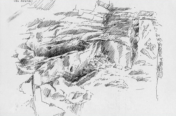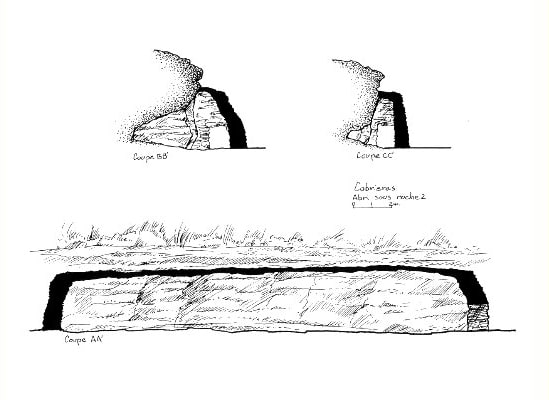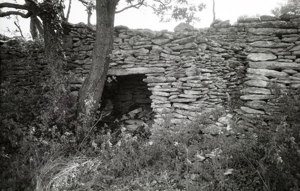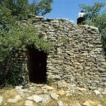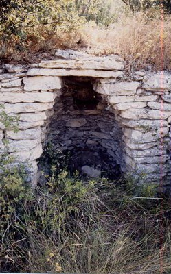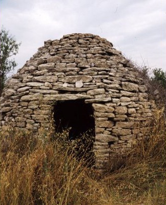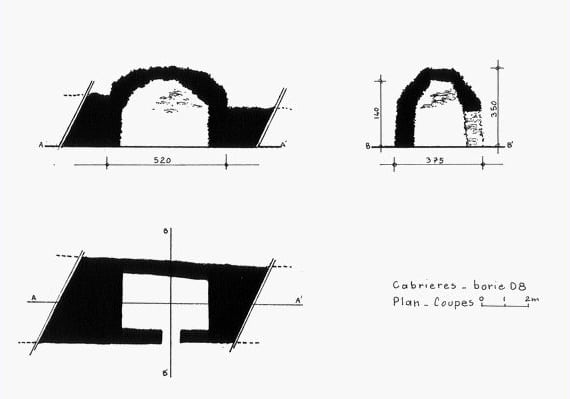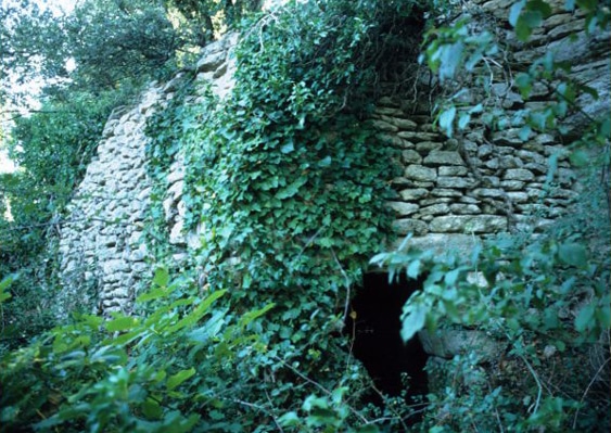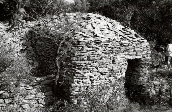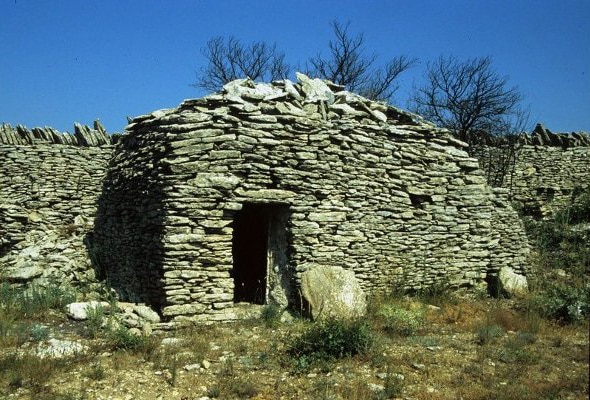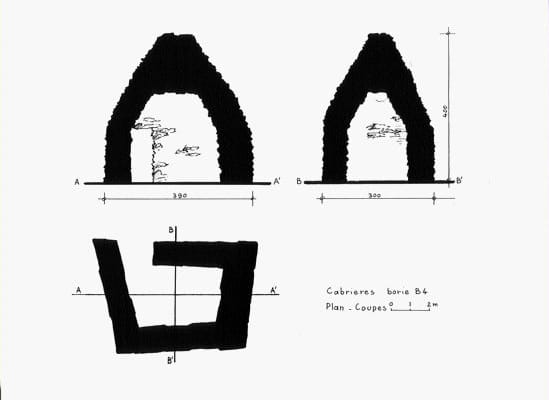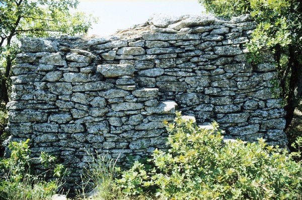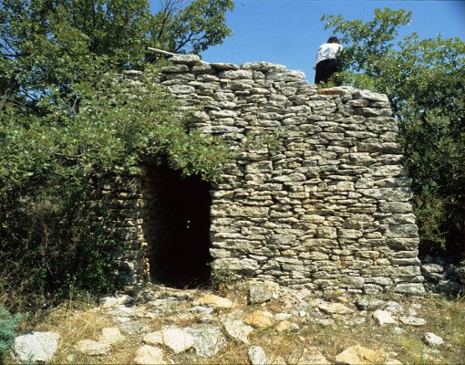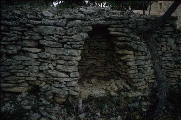 Habitat troglodyte (Type 5), abri sous roche, utilisant une cavité naturelle du rocher, appelée aussi baume. La construction consistait à ériger une façade suffisamment en retrait de la voûte en surplomb et éventuellement deux murs en retour. Ils étaient utilisés comme habitat permanent ou comme bergerie.