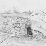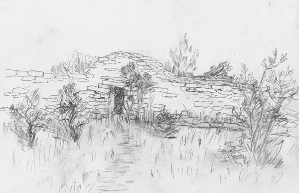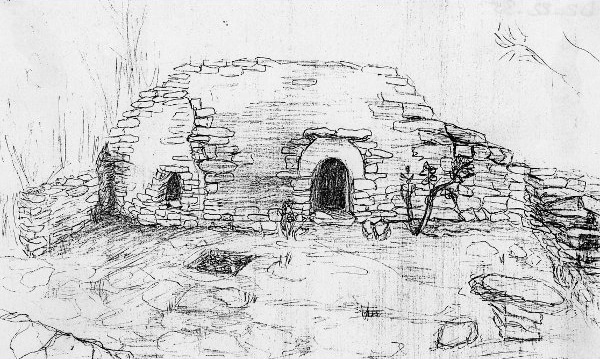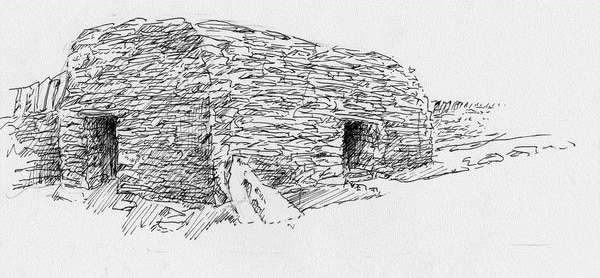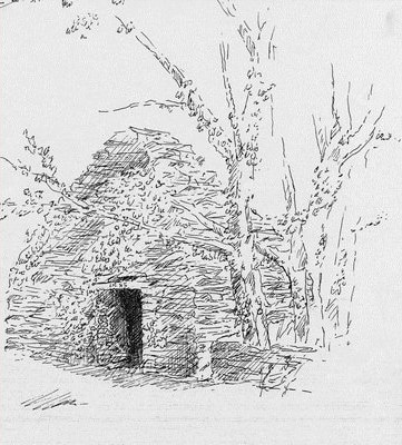 Cabane des champs (Type 2), petite cabane ronde ou rectangulaire servant d’abri agricole sur des terres cultivées; certaines, reconnaissables à leurs multiples meurtrières, cachaient le guet des chasseurs.