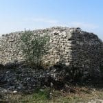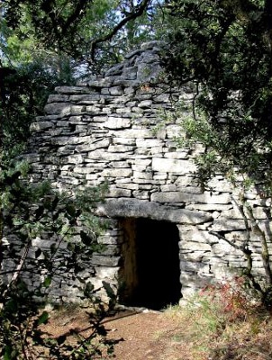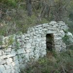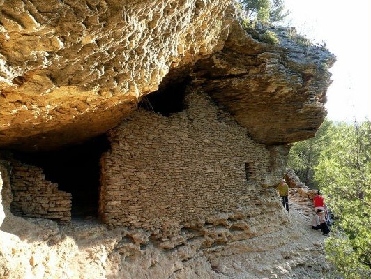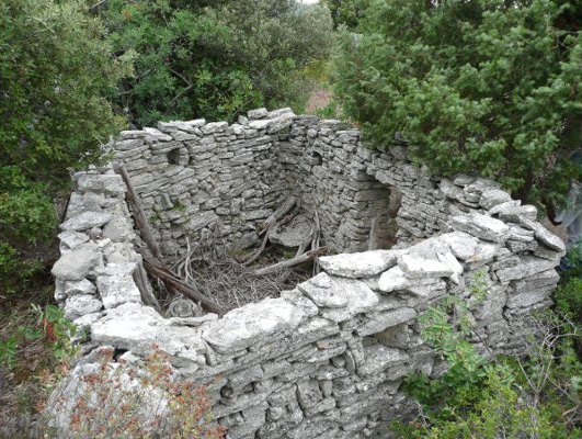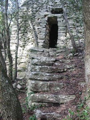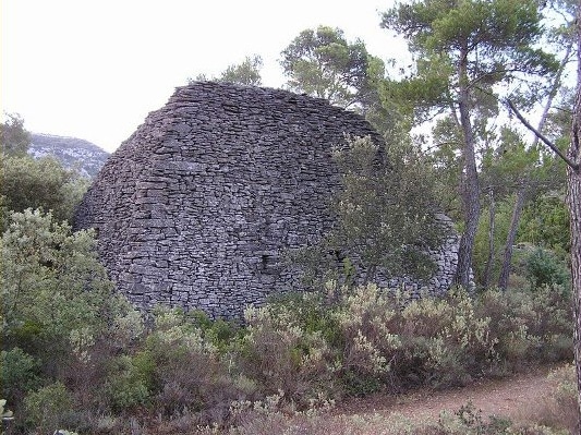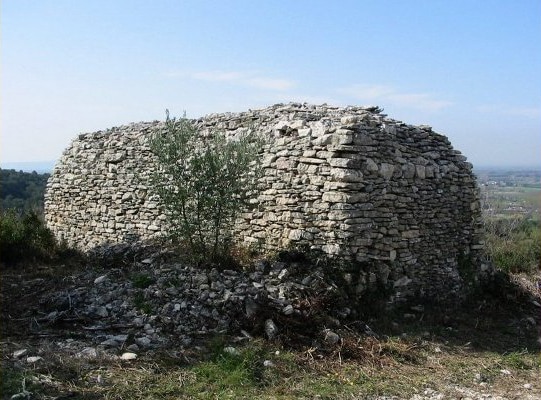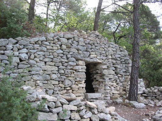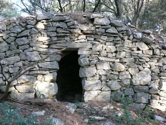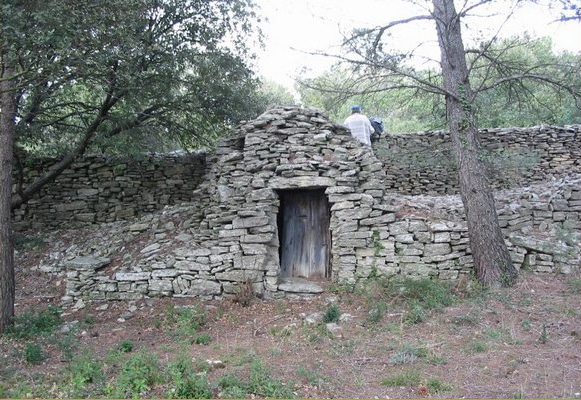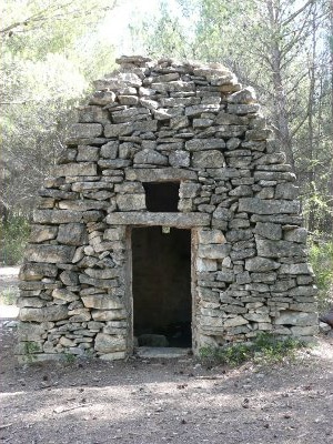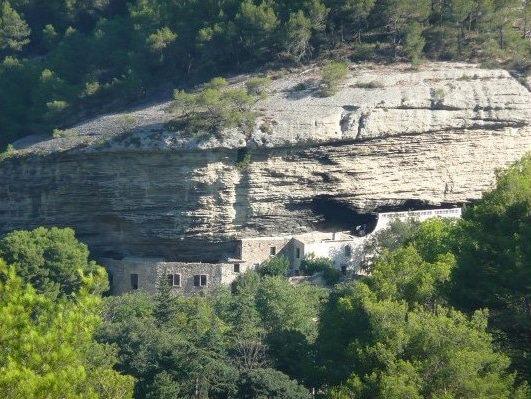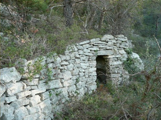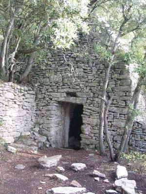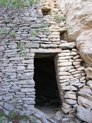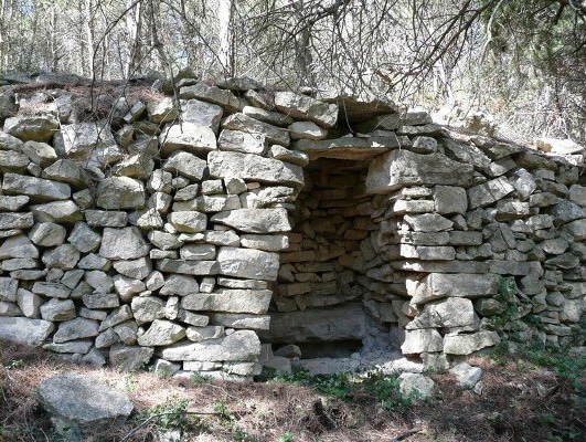 Habitat troglodyte (Type 5), abri sous roche, utilisant une cavité naturelle du rocher, appelée aussi baume. La construction consistait à ériger une façade suffisamment en retrait de la voûte en surplomb et éventuellement deux murs en retour. Ils étaient utilisés comme habitat permanent ou comme bergerie.