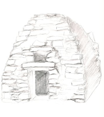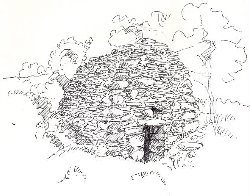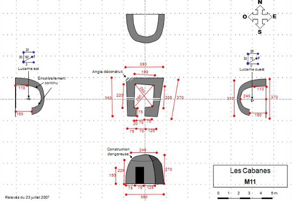 Cabane des champs (Type 2), petite cabane ronde ou rectangulaire servant d’abri agricole sur des terres cultivées; certaines, reconnaissables à leurs multiples meurtrières, cachaient le guet des chasseurs.