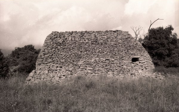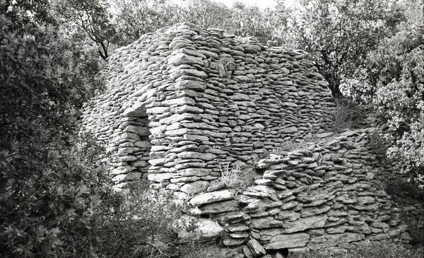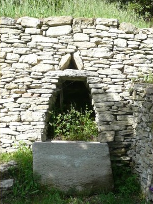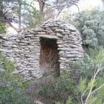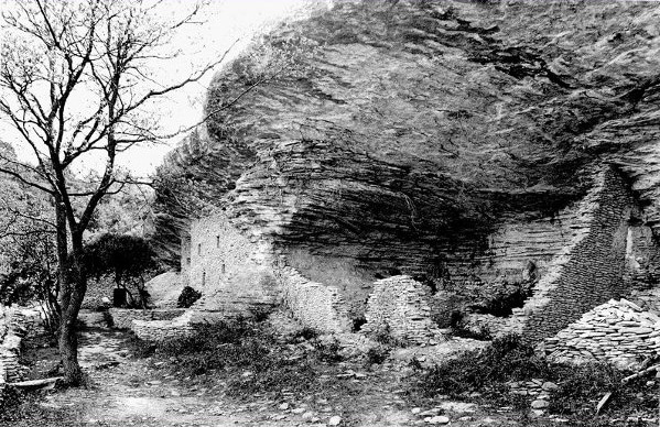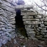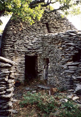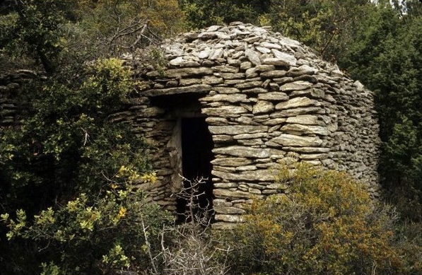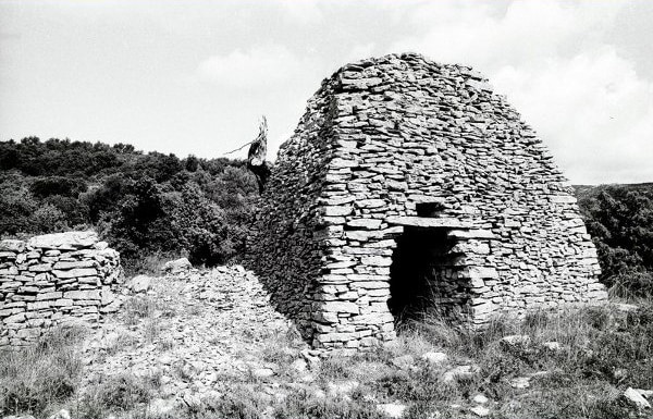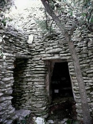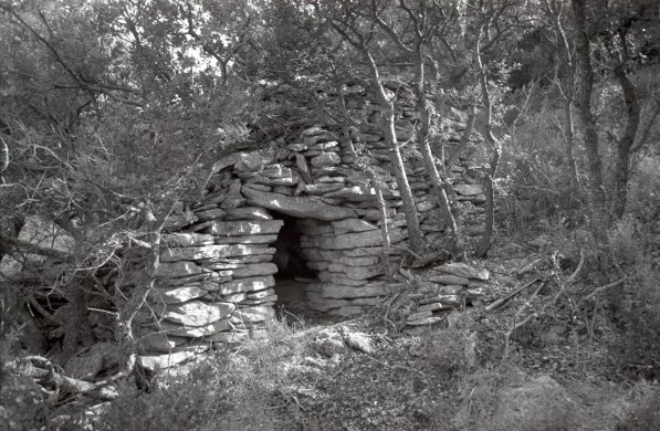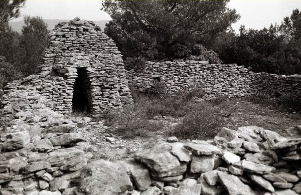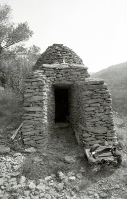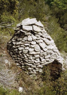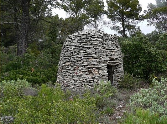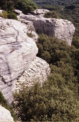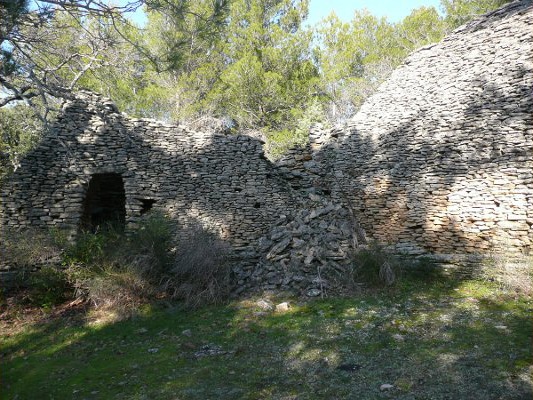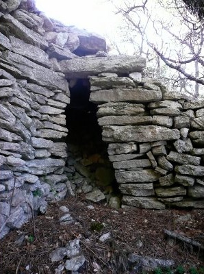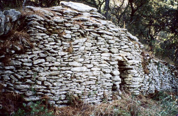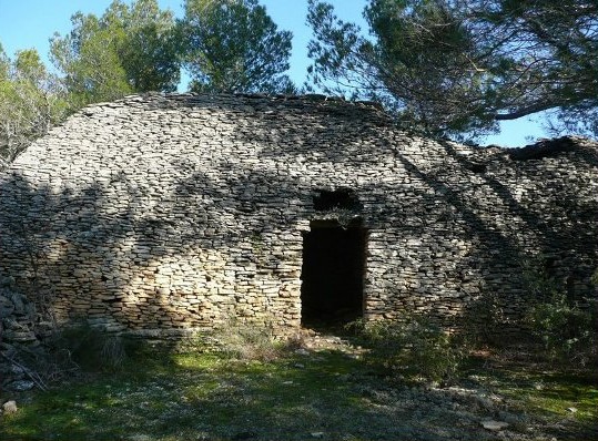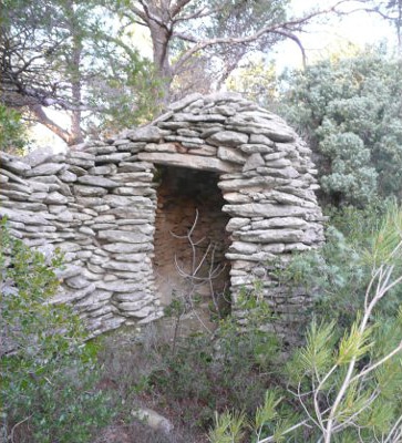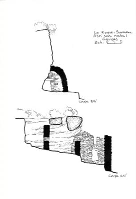 Habitat troglodyte (Type 5), abri sous roche, utilisant une cavité naturelle du rocher, appelée aussi baume. La construction consistait à ériger une façade suffisamment en retrait de la voûte en surplomb et éventuellement deux murs en retour. Ils étaient utilisés comme habitat permanent ou comme bergerie.