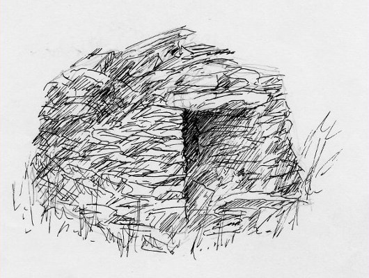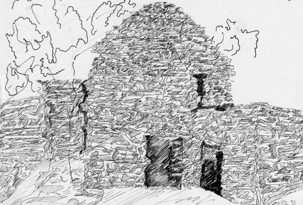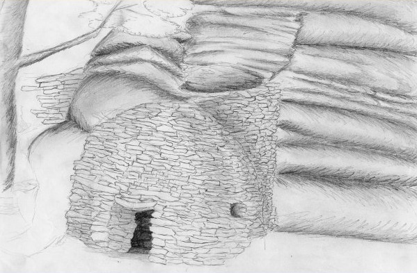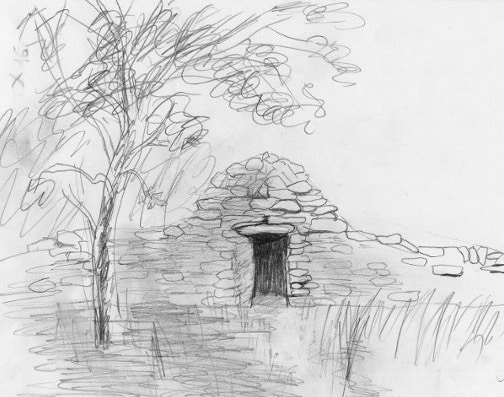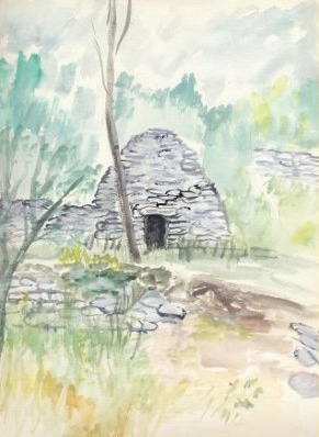 Cabane des champs (Type 2), petite cabane ronde ou rectangulaire servant d’abri agricole sur des terres cultivées; certaines, reconnaissables à leurs multiples meurtrières, cachaient le guet des chasseurs.