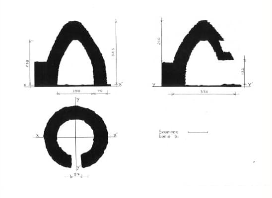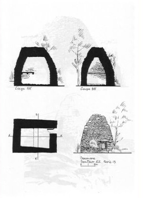 Cabanes particulières (Type 6), cabanes affectées à une fonction spécifique (ex: grange autour d’une aire de battage) ou présentant une originalité dans la construction (ex. cabane à gradins).