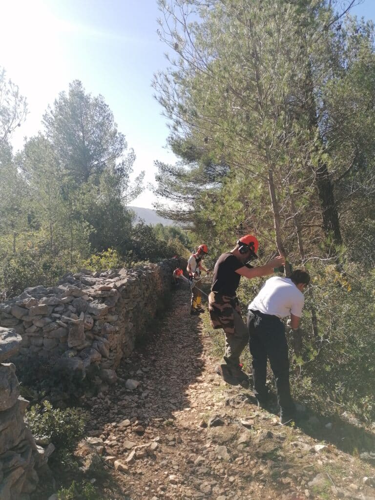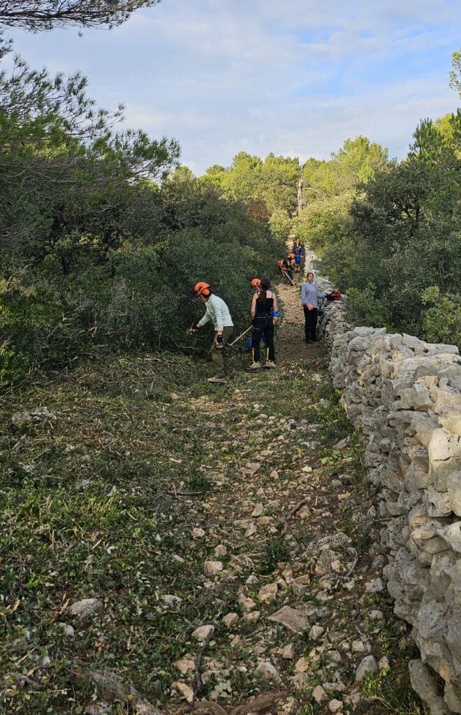 • 6 novembre, 13 novembre, 27 novembre : continuation du nettoyage le long du chemin et début du nettoyage de l’autre côté du mur sur une largeur de 1 m pour éloigner le front de la végétation arbustive et arborée. Du travail très bien réalisé par ces jeunes encadrés par Hoani Barret et Didier Alligrini.